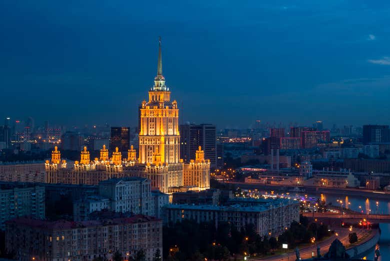 Inaugureremo il nostro itinerario percorrendo via Arbat e la sponda opposta del fiume Moscova per contemplare l'Hotel Ucraina, uno dei grattacieli costruiti all'epoca di Stalin. Seguendo il corso del fiume, effettueremo la nostra prima tappa in corrispondenza del belvedere del Centro Internazionale di Affari di Mosca. L'architettura avanguardista dei suoi edifici è totalmente differente rispetto a quella d'epoca sovietica.